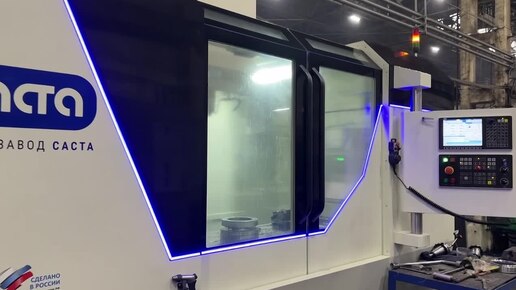 Новый фрезерный российской обрабатывающий центр "Саста" мод. ВМС-1300 собственного производства в работе в механообрабатывающем цеху завода.
