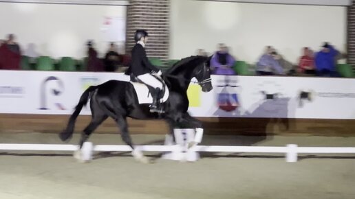 Вороной ганноверский Сандро Маринеро на шоу-презентации жеребцов выездкового направления. Конная Россия 2024
