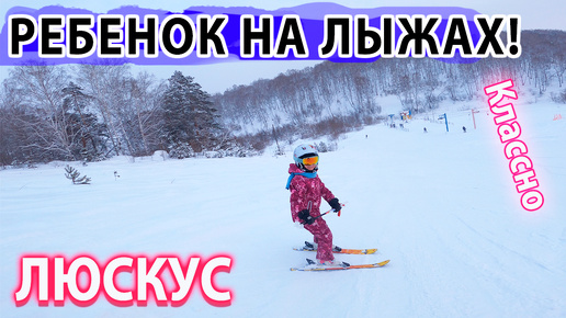 7 Лет, а катается вполне ОТЛИЧНО! Дочка пробует трассы на Домашней Горнолыжной трассе ЛЮСКУС