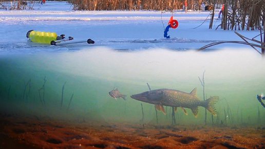 ВРЕДНАЯ ЩУКА! Рыбалка на жерлицы, ловля Окуня по первому льду/ Подводная съемка