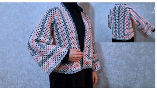 1 часть. Кардиган из двух шестиугольников. Вязание крючком (перевод на русский язык есть)