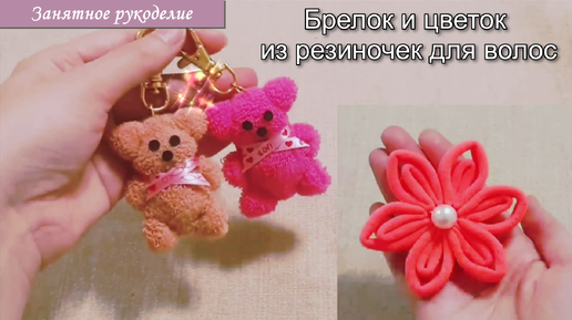 Вы удивитесь, что можно сделать из резиночек для волос. Посмотрите , как сделать брелок-медвежонок и цветок из ненужных резинок.