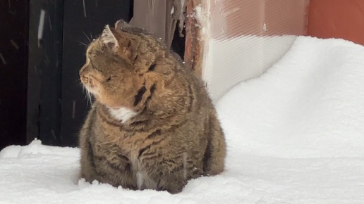Милые котики. После сильной метели Барс выходит на прогулку.
