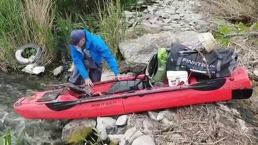Перетащил каяк Point 65 KingFisher через каменную насыпь