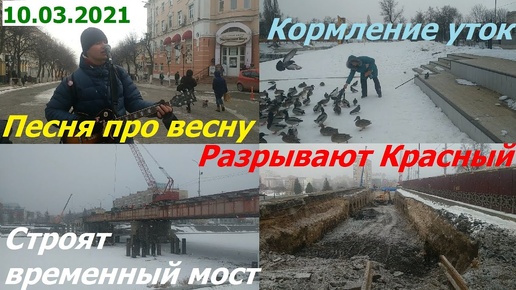 0982, г. Орёл, 10.03.2021, ул. Ленина, Цой, песня Весна, кормление уток, Красный мост, реконструкция