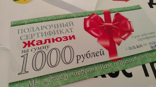 Подарочный сертификат на жалюзи . Спасибо большое очень приятно🌹🔥👍👌