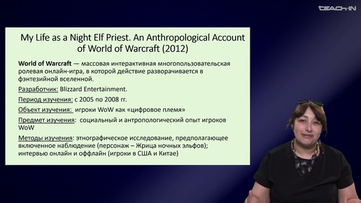 Седых О.М. - Культурная антропология 3 - 4. Цифровая антропология: World of Warcraft