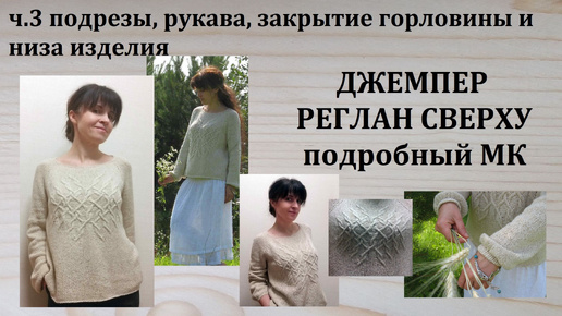 Джемпер Реглан сверху Вяжем Подрезы Рукава Закрытие низа и горловины часть 3