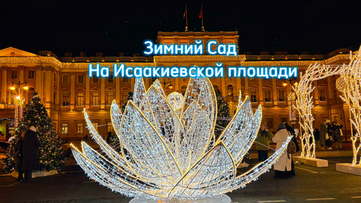 Зимний Сад на Исаакиевской площади в Петербурге. Нарядные елки, деревья из гирлянд, световой фонтан, арки - новогодняя сказка на Синем мосту