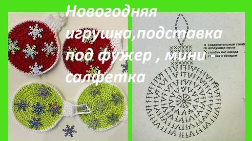 Новогодняя игрушка , мини-салфетка ,подставка под горячее , вязание крючком по схеме .