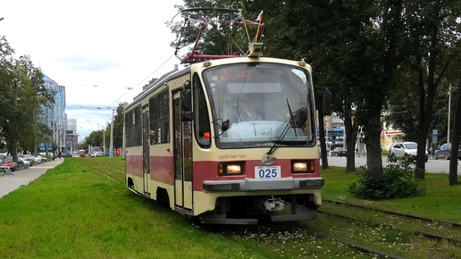 Трамвай Екатеринбурга УТМ 71-405 борт. №025 маршрут 2 на улице Челюскинцев измененным маршрутом