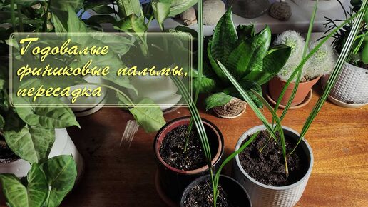 Пересадка годовалых финиковых пальм, выращенных из косточек / Цветы дома 12.12.2024