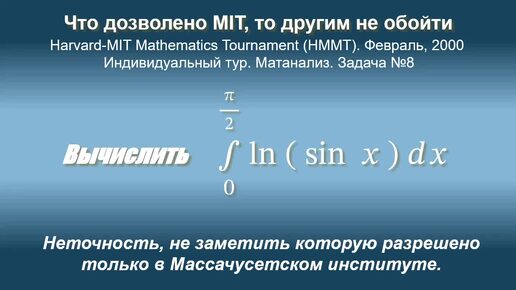 Вычислить интеграл от ln(sin x) в промежутке от 0 до π/2. Harvard-MIT (HMMT) - 2000.