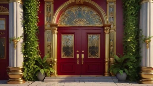 Дизайн дома: особняк с богатыми деталями, с сочетанием красных и золотых оттенков.