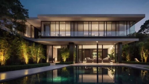 Дизайн дома: современный особняк с элегантным дизайном из полированного камня и стекла.