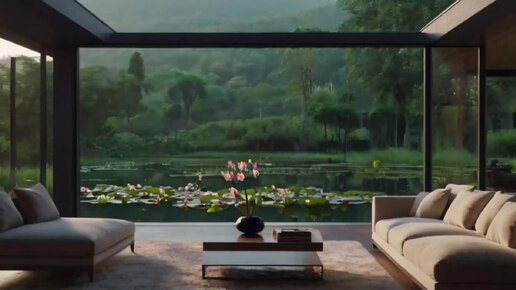 Дизайн гостиной: современная гостиная с природой и видом на сад.