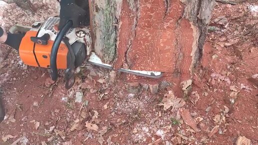 Великолепное качество и комфорт при работе с валкой деревьев с использованием бензопилы Stihl и винтового клина КВМ-1