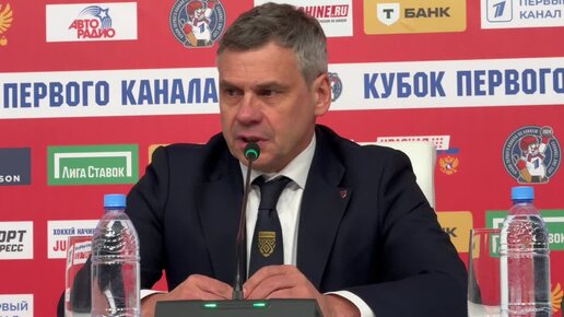 Наставник сборной Беларуси Дмитрий Квартальнов после поражения его подопечных в овертайме от сборной России на Кубке Первого канала