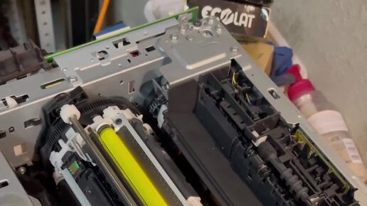 "Раздетый" HP Color LaserJet Pro MFP M177fw в работе. Как печатает барабанный "револьверный" лазерный принтер?