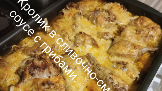 Кролик в сливочно-сметанном соусе с грибами.