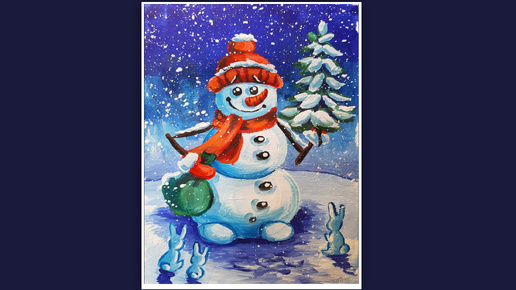 Рисуем снеговика гуашью. Рисуем новогоднюю открытку.