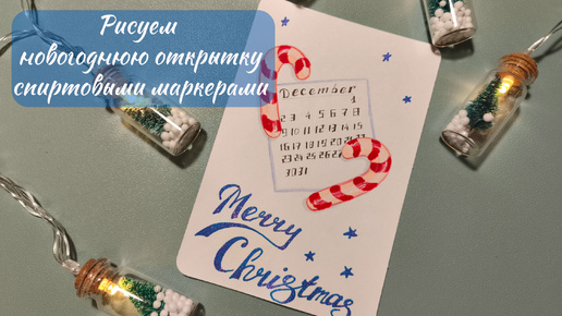Рисуем новогоднюю открытку спиртовыми маркерами | Пошаговый видеоурок | Draw with me