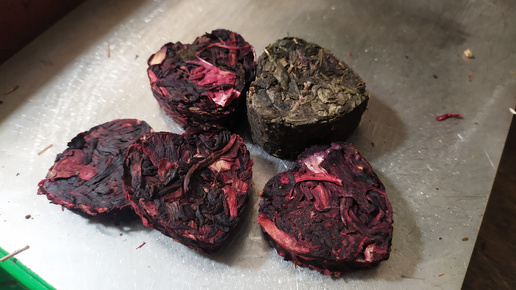Прессовка зелёного чая и каркаде в таблетки- сердечки