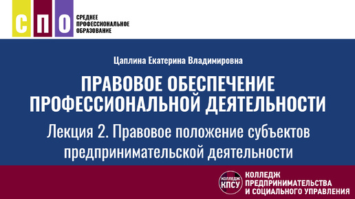 Лекция 2. ПОПД. Правовое положение субъектов предпринимательской деятельности