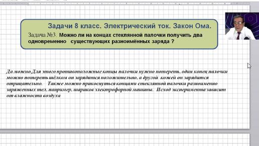 Физика08 ОК 003 Задача 3 Закон Ома. Сопротивление. Можно ли на концах стеклянной палочки получить два одновременно существующих ...