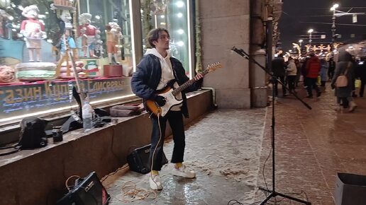 ПИТЕР 💖СОЛИСТ ГРУППЫ КЛЕВЕР ХАУС 🎸ДЖОНИ 🎤ВЫСТУПАЕТ НА НЕВСКОМ ПРОСПЕКТЕ 💖