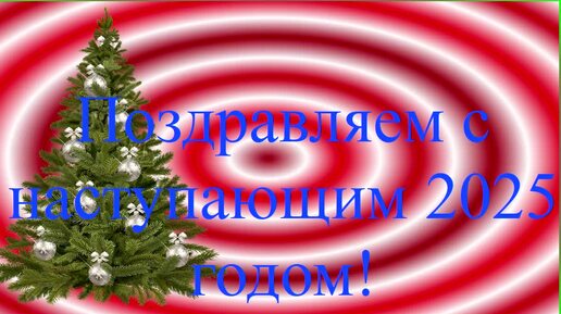 Поздравление с наступающим 2025 годом на красных колечках с ёлкой