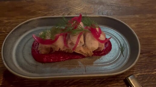 Строганина из муксуна со свекольным кремом в гастробаре Alaska