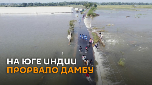 На юге Индии из-за ливней прорвало дамбу и затопило поселки (видео с дрона)