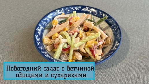 Салат с копчёной колбасой, овощами, кукурузой и сухариками // пп-рецепты // новогоднее меню 2025г.
