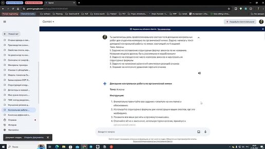Создаём домашние контрольные работы по химии с помощью Gemini