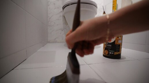 Покраска плитки в санузле: завершающий этап. Покрываю пол лаком Alpine