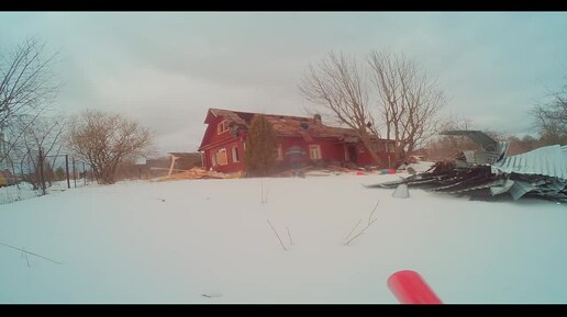 Демонтаж большого бревенчатого дома.