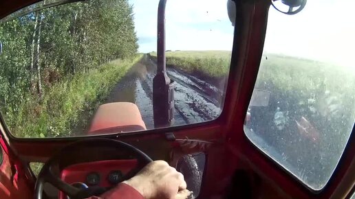 Эх, дороги. Началась уборочная в дождливый год. Минитрактор в грузовых колеях.