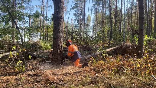 Препятствие в виде упавших деревьев не остановит нас — мы с лёгкостью справимся с задачей с помощью бензопилы Stihl MS 361.