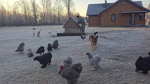 Хутор к праздникам украшен. Щенок овчарки подсказала идею гнёзд для кур. Сын нас кормит супом том ям