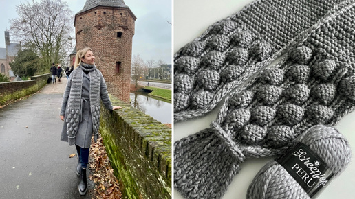 Огромный шарф узором малинки. Обзо изделия.