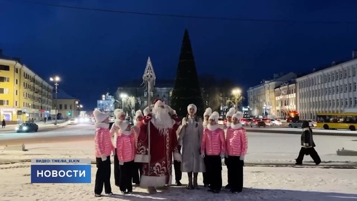 Главную ёлку Пскова зажгли Дед Мороз, снегурочка и вокалисты из студии «Город детства»