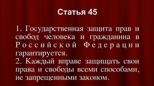 Государственная защита прав и свобод человека и гражданина гарантируется. СТАТЬЯ 45 Конституции РФ