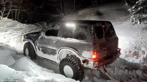 Спасательная операция по вызволению из снежного плена застрявших в снегу машин в горах Северной Осетии Алании.