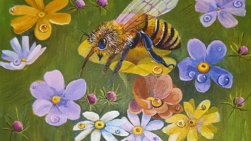 Как написать акрилом картину с пчелой