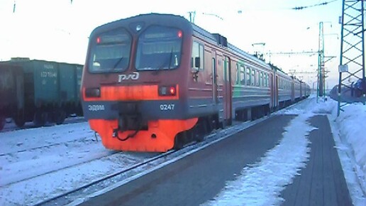 Электропоезд ЭД9М-0247. Покатушки от моста через Обь до Алтайской+отправление.