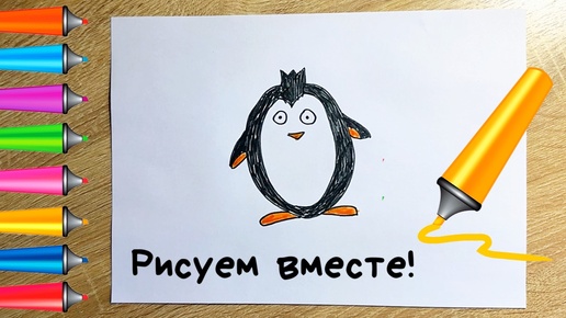 Рисуем пингвина. Для детей. Рисуем вместе. Пошаговый урок рисования.