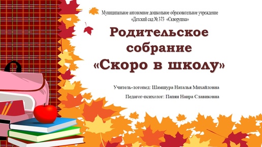 Родительское собрание "Скоро в школу". Преемственность. Часть 4. МАДОУ д/с