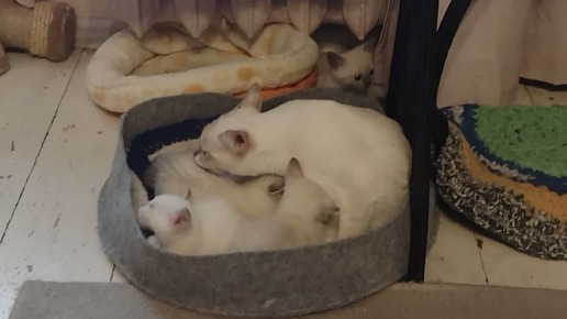Кошачье утро, Чисаня со своими детками, все вместе, все хорошо