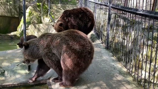 Папа медведь занимается воспитанием медвежат! Зоопарк «СКАЗКА»!